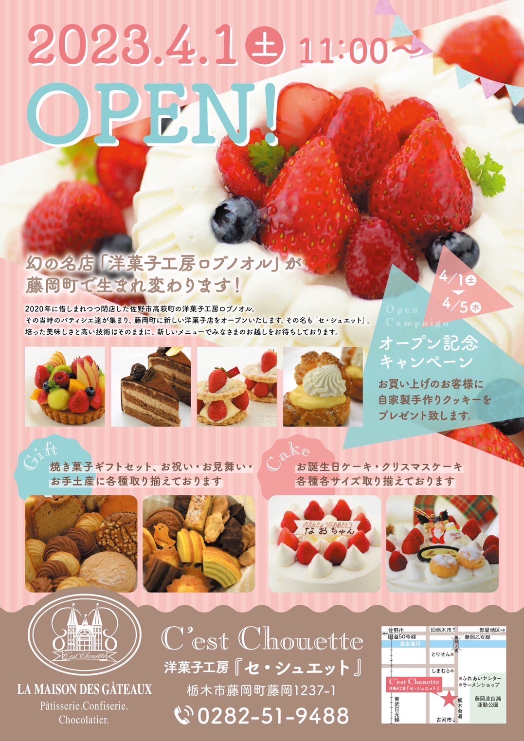 『洋菓子工房セ・シュエット』として、栃木市藤岡町で生まれ変わります!